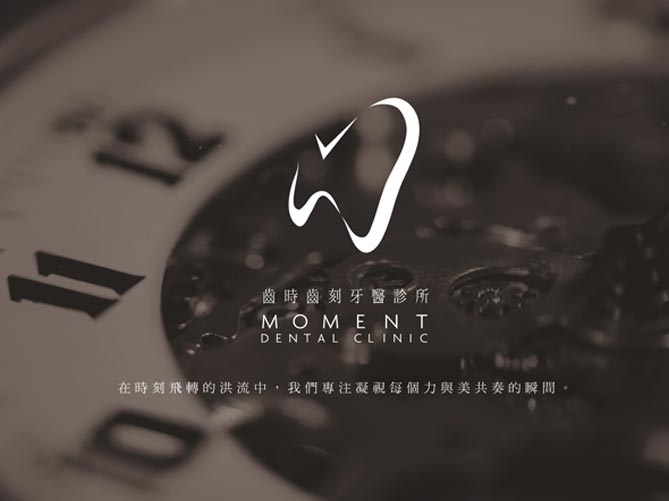 流暢的線條,以及俐落的指針表現診所名稱”齒時齒刻”時光快速流動的意象以及診所快速的服務。牙齒造型代表牙醫行業。